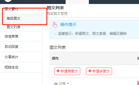 (2)回复类型分为六种:文字、图文、高级图文、语音、图片、视频。回复文字可在选择群发内容里添加文字和超链接,图文、语音、图片、视频都是自动获取微信公众号上的内容。高级图文可在小红点后台微信模块—高级图文里添加。