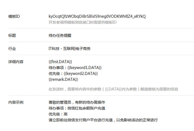(1)开通微信公众平台模版消息,选择你要使用的模版