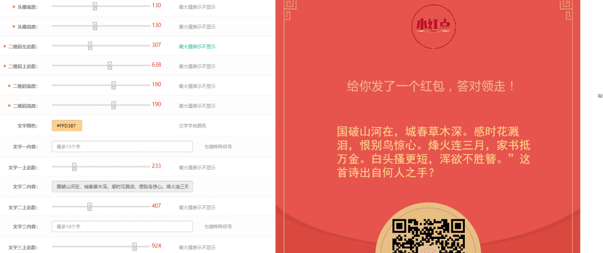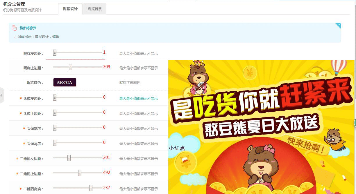 (2)海报设计:调整二维码、头像、昵称等显示位置,移动进度条可变换位置。