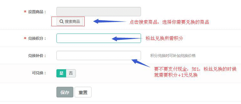 (1)设置商品:点击搜索商品,选择你需要兑换的商品