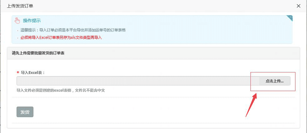(3)在导出的文件中填写运单号(切记导出的文件不可以修改其它内容,只可以填写运单号)