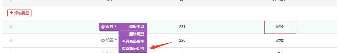 一、添加流程:进入后台->商品管理->商品类型->类型列表