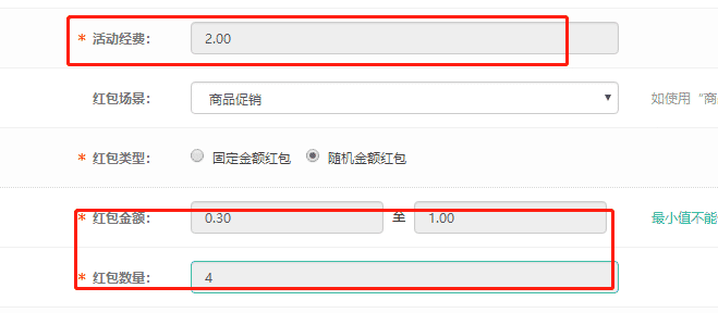 随机红包规则:活动经费÷红包最大金额 < 红包数量 < 活动经费÷红包最小金额