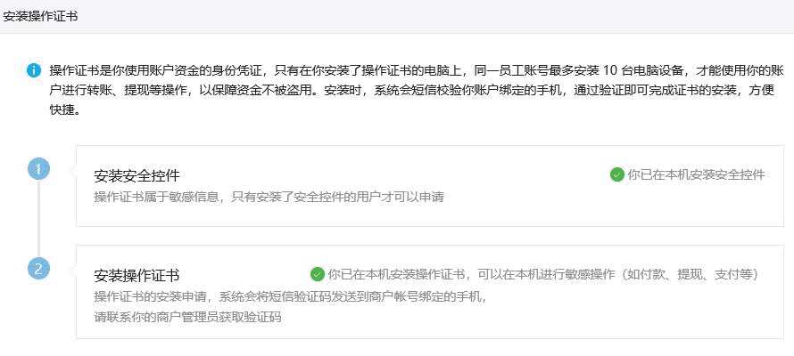(4)安装操作证书,下载后安装支付插件即可(下图是已安装过的图)。