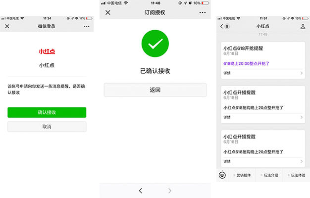模版消息预约通知;用户同意接受消息限制,开启无限内容推送