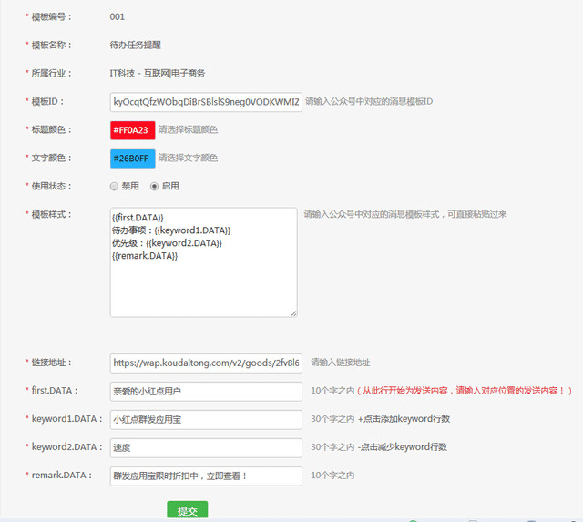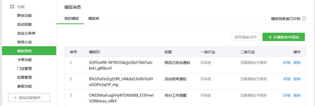 (1)开通微信公众平台模版消息,选择你要使用的模版