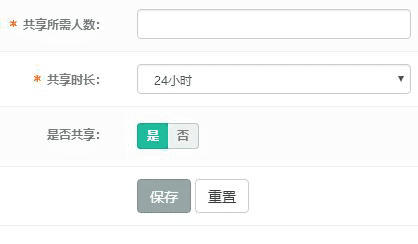 (4)共享所需人数:需要多少人一起完成共享; 共享时长:必须在规定时间内完成,否则失效。