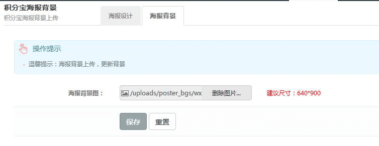 (1)海报背景:上传一张海报背景,尺寸建议640*900