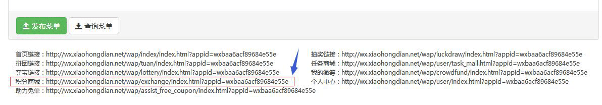 (积分宝积分商城链接获取方式:微信设置->微信自定义菜单-查看)