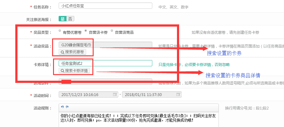 一、发布任务宝活动前请先设置有赞优惠券及小红点平台添加商品。商品发布可查看商品添加教程
