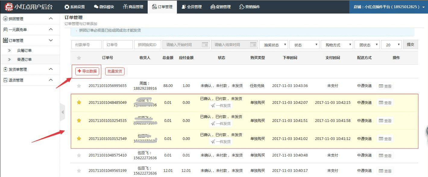 (1)筛选你要发货的订单或直接勾选你要发货的订单