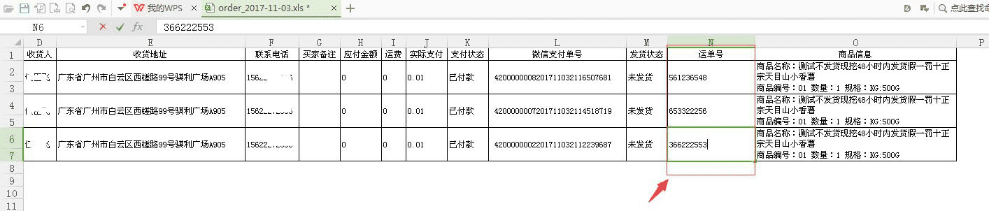 (3)在导出的文件中填写运单号(切记导出的文件不可以修改其它内容,只可以填写运单号)