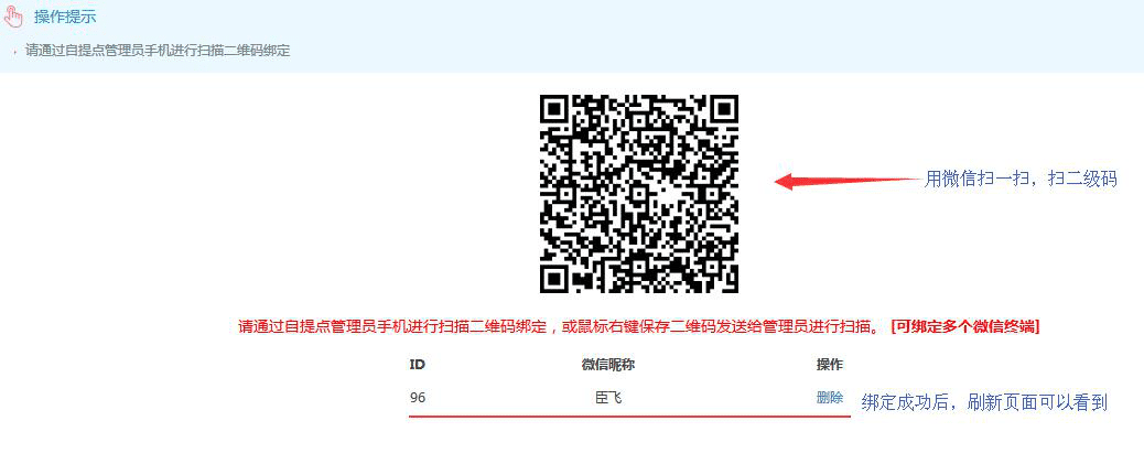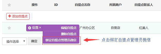 (4)绑定自提点管理员微信,只有绑定后的才能进行核销
