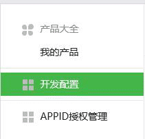 (1)登录微信商户支付平台,进入到首页面,点击产品中心,左侧菜单栏点击开发配置。