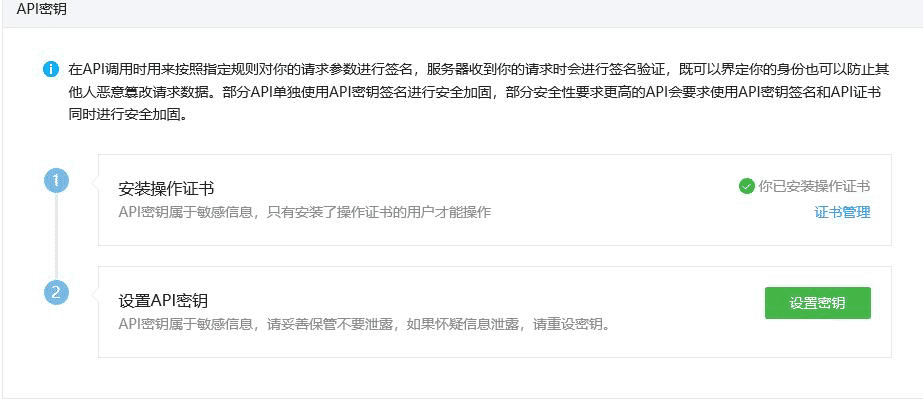 (5)接着点击左侧的API安全,点击下载证书,获取验证码后输入验证码即可下载。