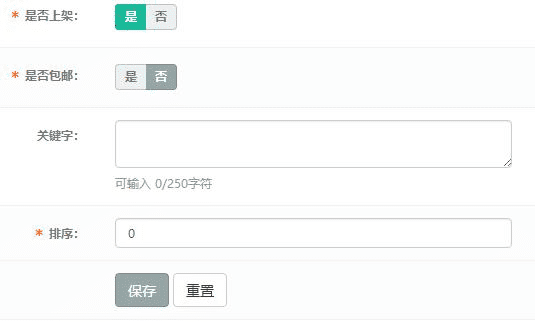 (3)商品简介:商品前台页面展示的二级小标题,也就是说除商品名称外,我们还可对商品更详细的描述一下其附属信息